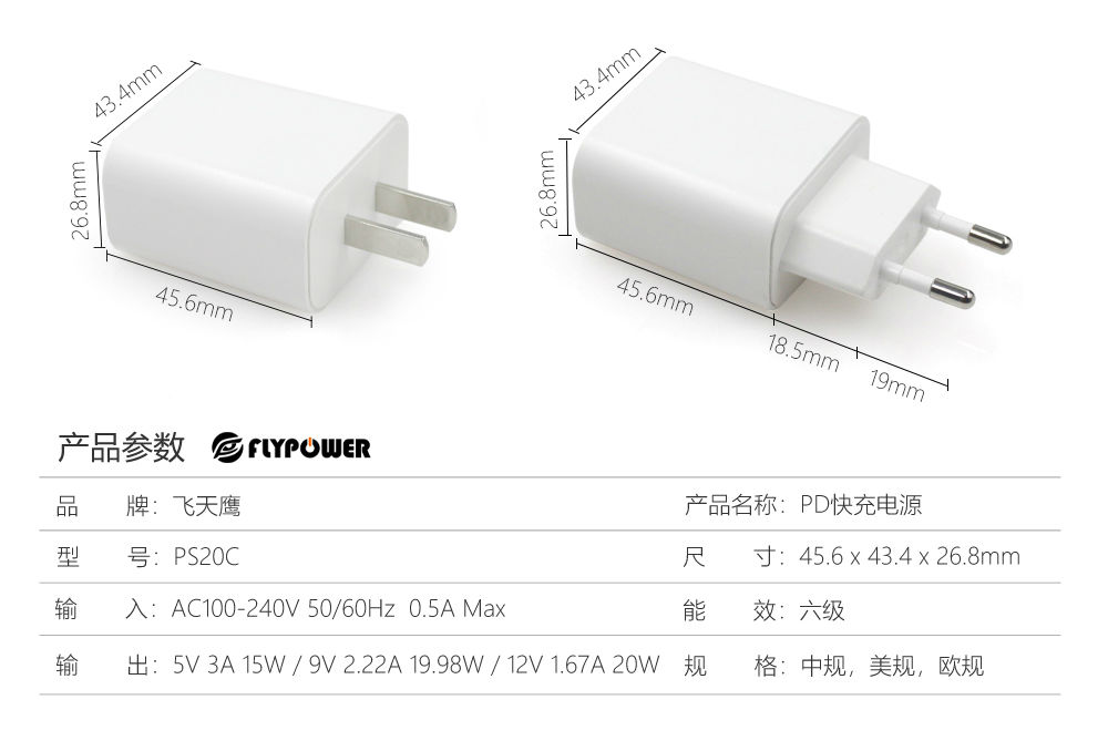 输 出:5V 3A 15W/ 9V 2.22A 19.98W/ 12V 1.67A 20W Max