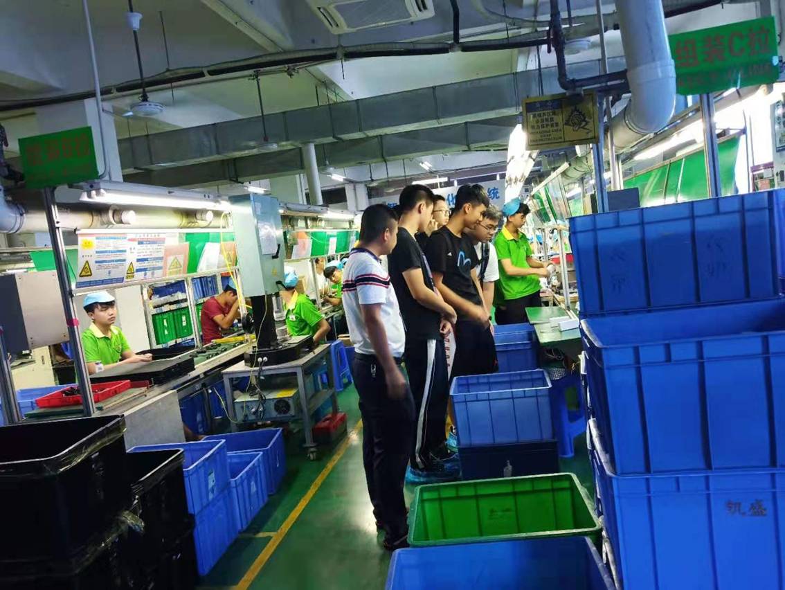 学生们动手操作,参与产线工作