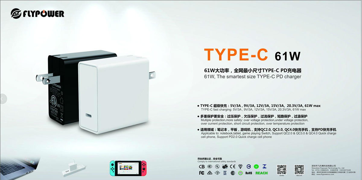 飞天鹰生产的45W Type-c PD快充充电器在市场上大获成功,获得了国内外客商的广泛赞誉,应市场的要求,飞天鹰在45W Type-c PD充电器的基础上研发生产出了60W Type-c PD快充充电器,尺寸不变,功率升级。依然支持五档充电电压,同时兼容最新的QC4.0快充。