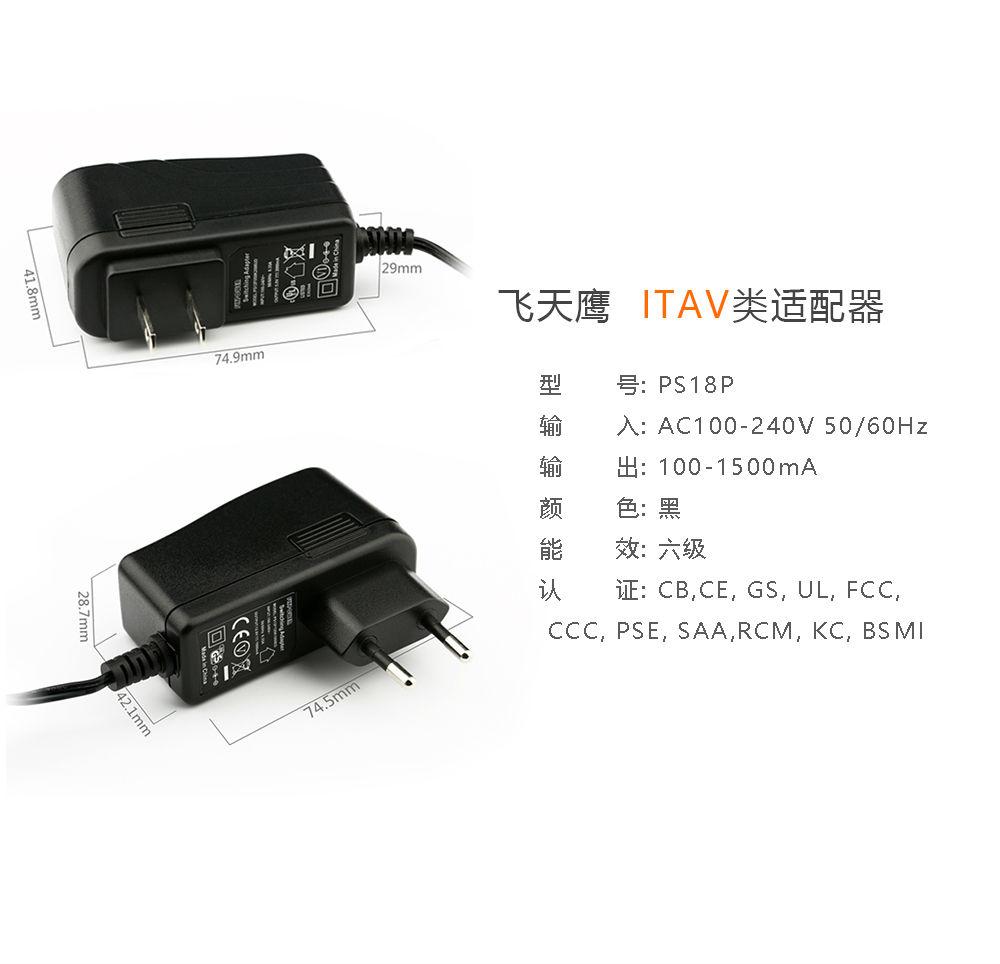 稳定高效,节能环保。飞天鹰12V1.5A带线电源适配器满足最新六级能效标准,更高效率,更低功耗,节能环保,也带来了更加稳定可靠的充电环境。