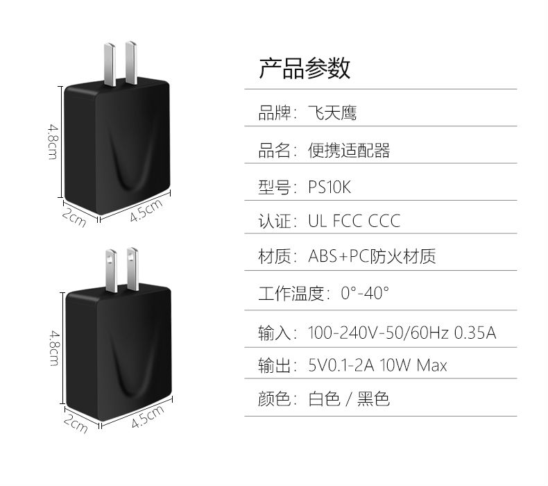输 出:5V 0.1~2A 10W Max