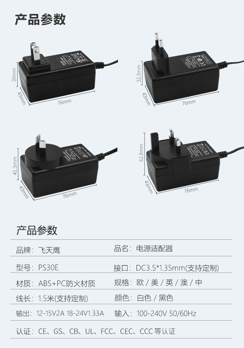 12V2A 24V1A 15V2A澳规 美规 英规 欧规电源